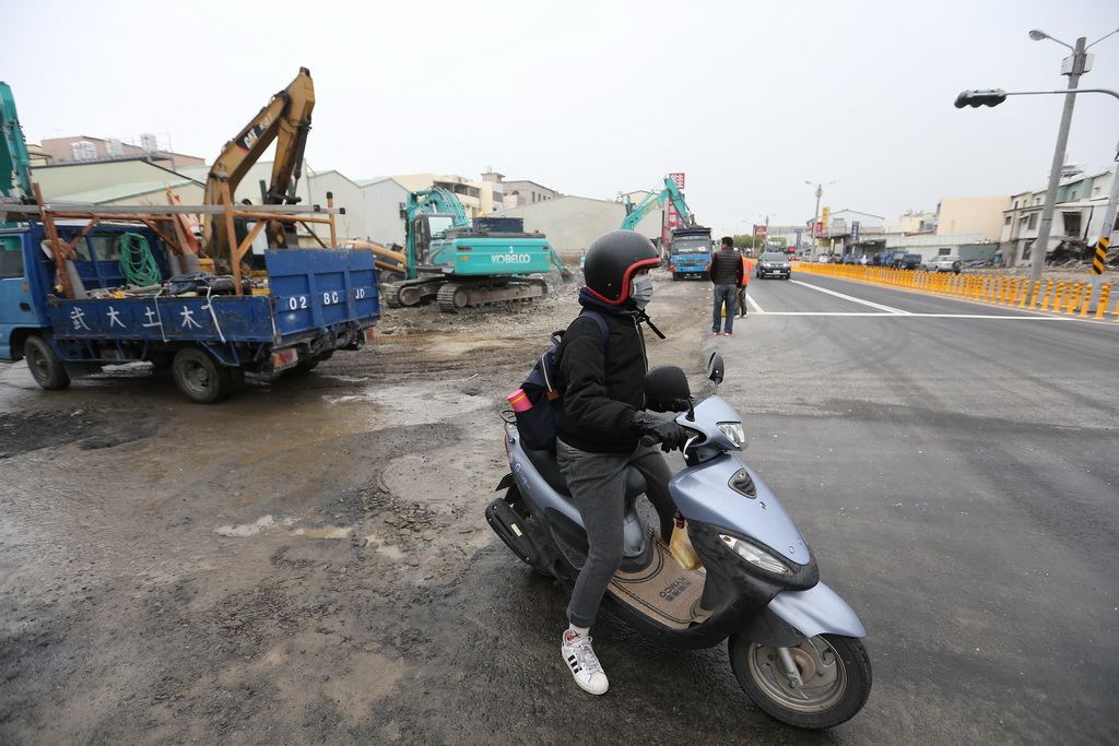 2月15日,受台南地震损坏的台南市永康区永大路二段重铺柏油,恢复通车,附近商铺也陆续开门营业。新华社发