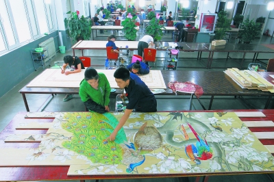 百年巧匠的绘画车间,毋宁说是大画室,近90人在1000平方米的空间里埋头作画,安静而专注,进入其中会不由自主地放慢脚步、压低声音。
