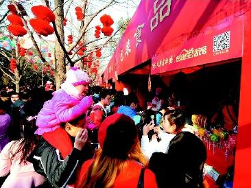 2016年春节黄金周,全国消费市场保持平稳较快增长态势,民俗消费红红火火,新兴消费蓬勃发展,传统年货、大众餐饮、文体娱乐、旅游休闲等成为节日消费亮点。据商务部监测,除夕至正月初六(2月7日至13日),全国零售和餐饮企业实现销售额约7540亿元,比去年春节黄金周增长11.2%。图为游客在北京地坛庙会购买年货。