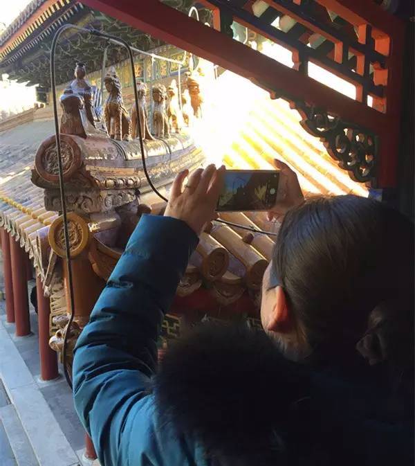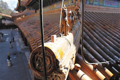 颐和园排云殿西北角屋脊边缘的“骑凤仙人”不见踪影。颐和吴老供图