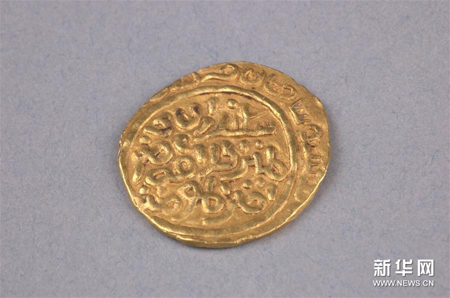 彭佳介绍,直到2001年,通过中国钱币学会牵头联络新疆考古研究所进行考证,并参考国外专著所刊币铭,确定这批金币是印度德里苏丹国时期打制。金币采用希腊造币法打制,币两面铭文系科菲体阿拉伯文。正面铭文有王号、名字,但背铭未能破译。