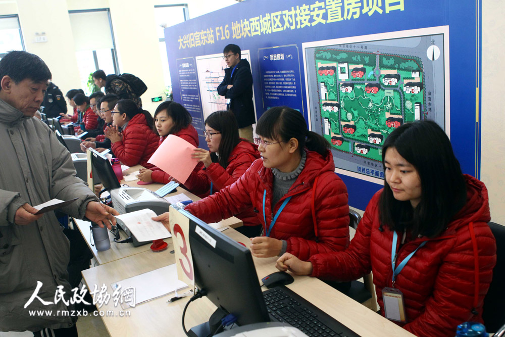 2月18日,北京市西城区白纸坊地区重点棚户区改造项目预签换领选房序号单。参与预签的当地居民正在观看项目沙盘。该项目总占地29公顷,总建筑面积26.54万平方米,涉及居民5600余户。据悉,预签5月17日结束,为期90天。此次棚户区改造,西城区在政策上实现了补偿政策、补助政策、房源配套、签约选房的标准化、规范化。棚改居民可有就地回迁、定向安置和货币补偿两种方式。人民政协网记者 贾宁 摄