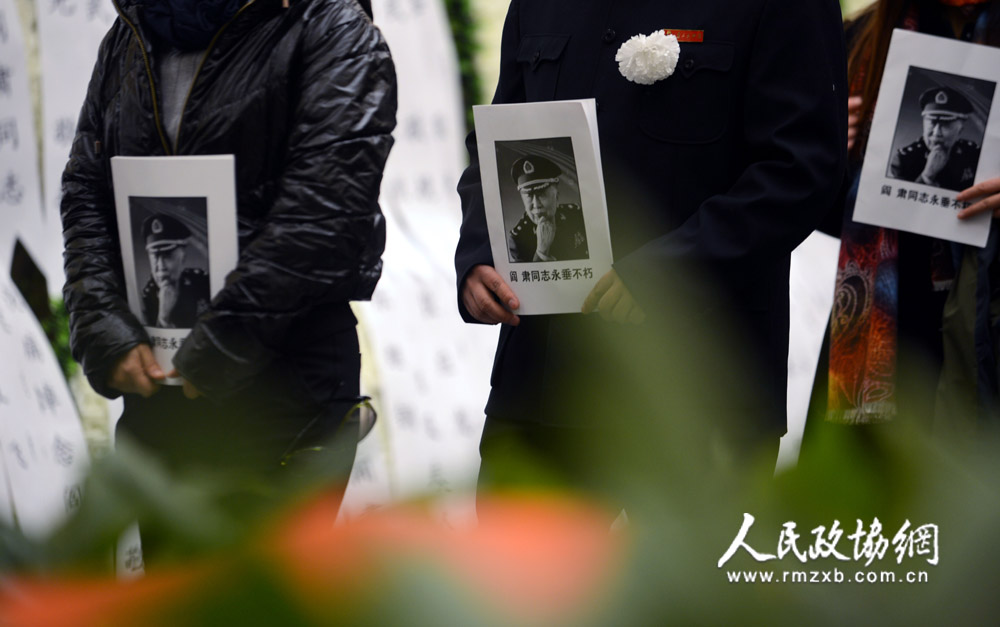 2月18日,著名艺术家、空政文工团创作员阎肃遗体告别仪式在北京八宝山举行,社会各界千余名群众前来送别。阎肃于2月12日3时07分在北京病逝,享年86岁。人民政协网记者 齐波 摄