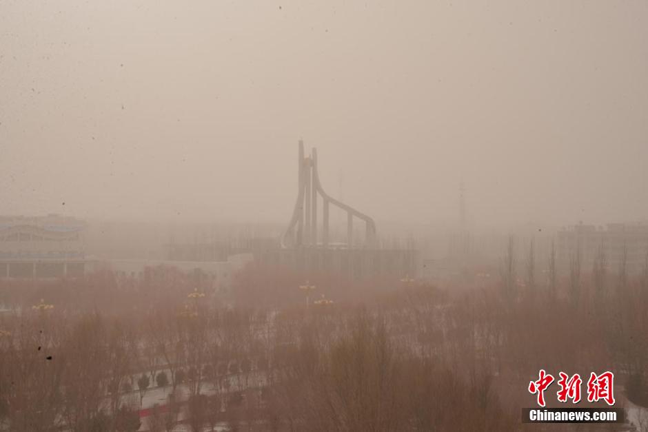 2月18日,地处甘肃河西走廊西部的酒泉玉门市出现猴年第一场扬沙天气,瞬间最大风力达9级,局部地方出现沙尘天气。图为扬沙天气里的玉门市区能见度低。 杨棋焜 摄
