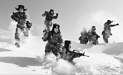 北部战区陆军某旅官兵正进行雪地冲击。谭长俊摄