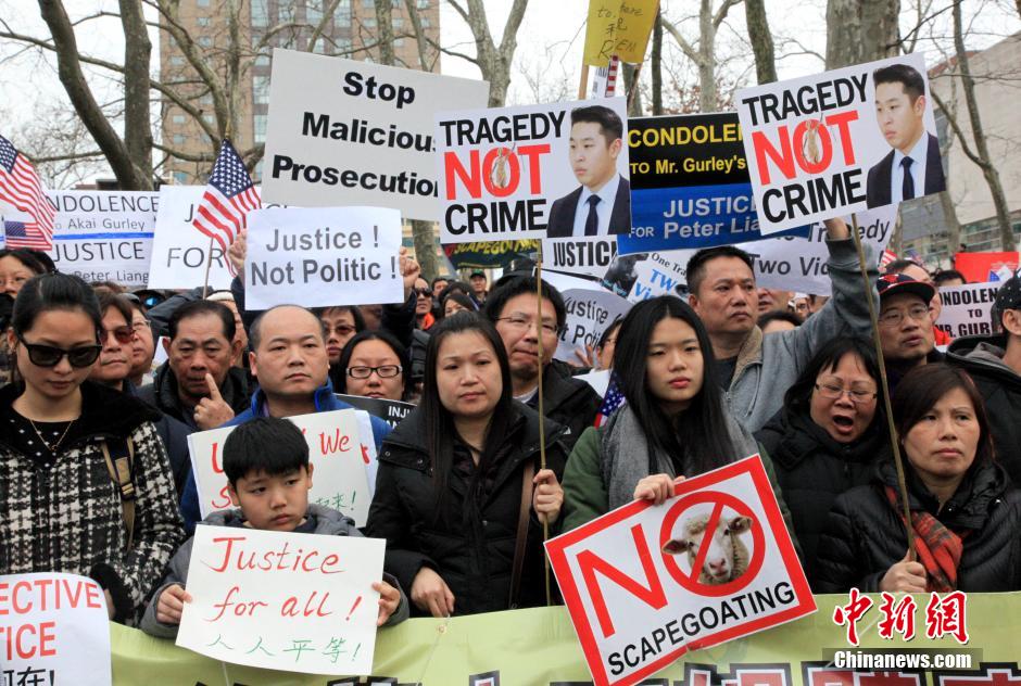 关键词:华裔警察误杀非裔青年 民众示威游行