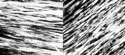 图上染色显示,经一周培养后,人工动脉能产生收缩蛋白(左)和肌钙蛋白(右),这两种分子能让动脉收缩舒张,对外部刺激产生反应。