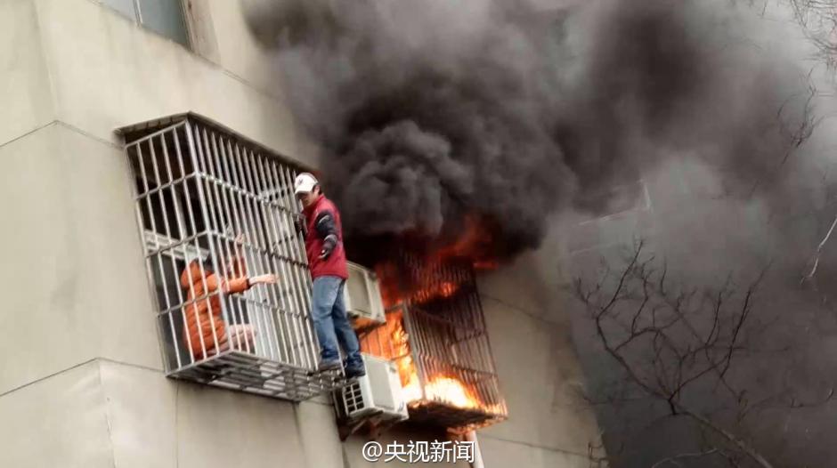 近日,湖北一户居民家着火冒出滚滚浓烟,一女子被防盗网困住!对面小区整理包裹的快递员张洋见状跑来,徒手爬上阳台,用手肘使劲撞开防盗网,终将女子救出?。ㄑ胧蛹钦呶馍芫?/span>