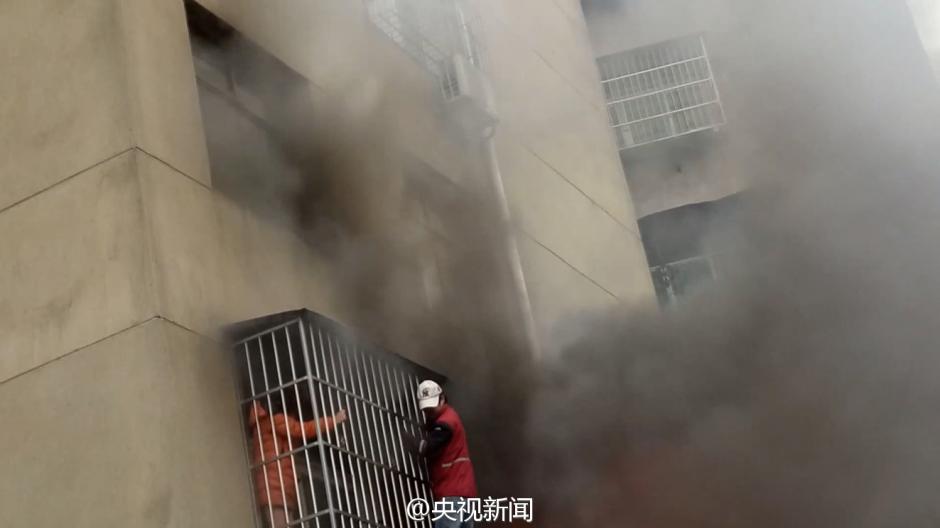 近日,湖北一户居民家着火冒出滚滚浓烟,一女子被防盗网困?。《悦嫘∏戆目斓菰闭叛蠹磁芾矗绞峙郎涎籼?,用手肘使劲撞开防盗网,终将女子救出?。ㄑ胧蛹钦呶馍芫?/span>