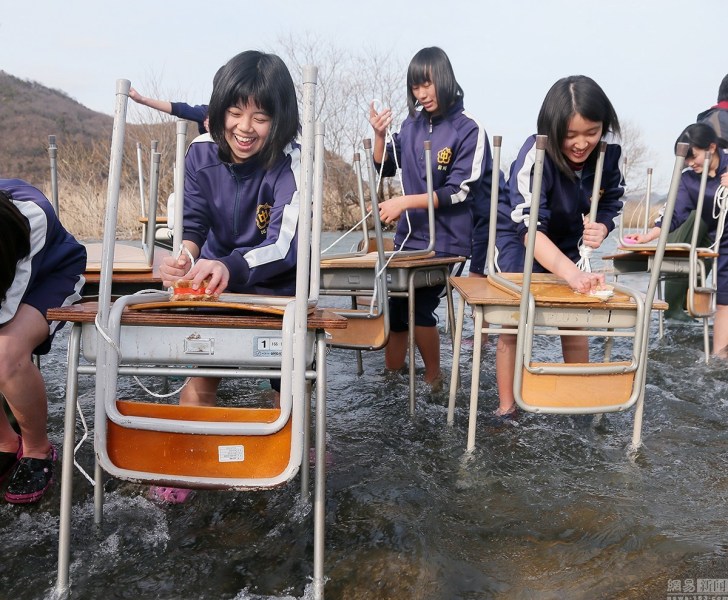 关键词:日本初中毕业生 冰冷河水中 清洗课桌椅