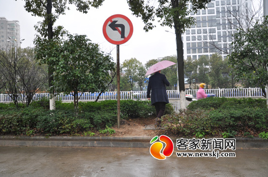 寻乌路(南)与赣江源大道之间的花圃被行人踩出了一条小道。