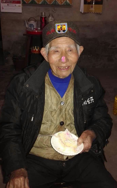 茶陵抗战老兵陈忠老人看到民革党员来了,兴奋地提出自己要提前和民革党员们一起过98岁生日,民革党员和志愿者买来蛋糕围在老人身边,聆听老人当年奋战的故事。