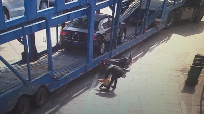 而肇事的大型挂车是安徽牌照,司机姓张,因为对当地路况不熟,匆忙间停错了车道。当时张某打算去临海方向,看T字路口左转往杜桥,右转去椒江,因此停在左转车道上,忽然发现去临海得走椒江方向,这才突然借道右转。