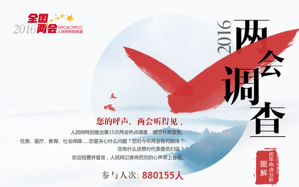 2月15日,2016年人民网两会调查上线,就公众关注的18个热点问题展开网上调查。这已经是人民网连续第15年推出两会调查。截至目前,“居民收入”暂居关注度排行榜第2位。