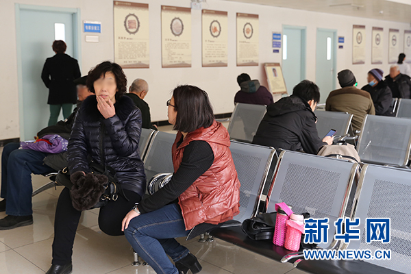 患者在涿州市中医医院呼吸科室外等待就医。新华网 袁馨晨摄