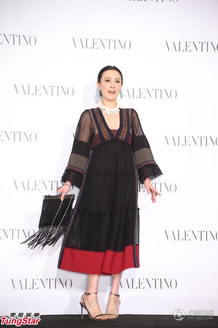 东星娱乐讯 刘嘉玲25日出席品牌酒会,她身着黑色薄纱衬着民族图腾的黑红礼服,大方又性感。
