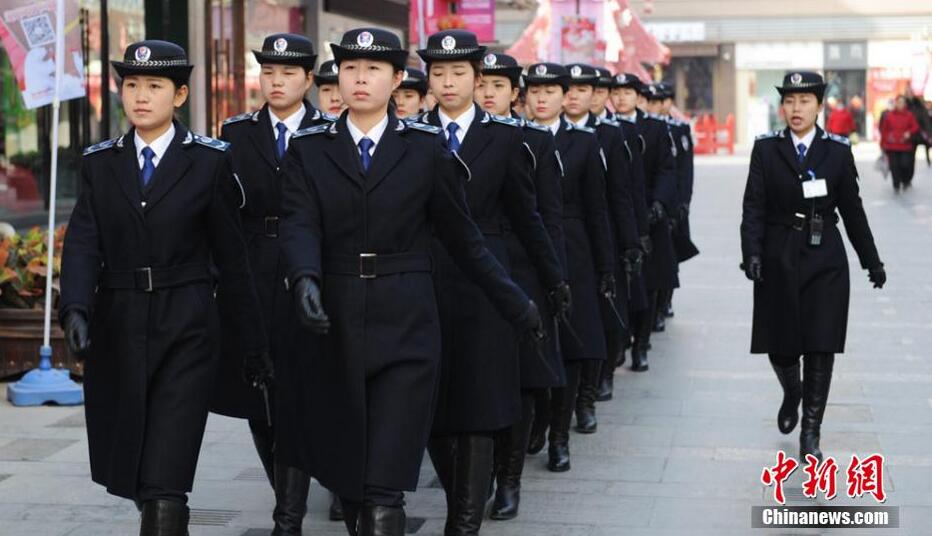 2月25日,26名面画淡妆、头戴蓝色蓓蕾帽、身着塑腰风衣、脚蹬高跟长靴的英姿飒爽的女城管亮相兰州,成为街头一道靓丽的风景线。她们是兰州市七里河区城市管理行政执法局女子中队的队员们,她们着装整齐、列队巡查,微笑劝说并清退流动商贩、占道经营的商家,以女子特有的“柔情”化解城管执法中的冲突。 杨艳敏 摄