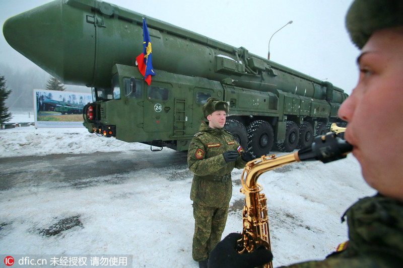 当地时间2015年2月25日,俄罗斯伊万诺沃州,RS-24亚尔斯洲际弹道导弹系统准备进行“胜利日”大阅兵彩排。