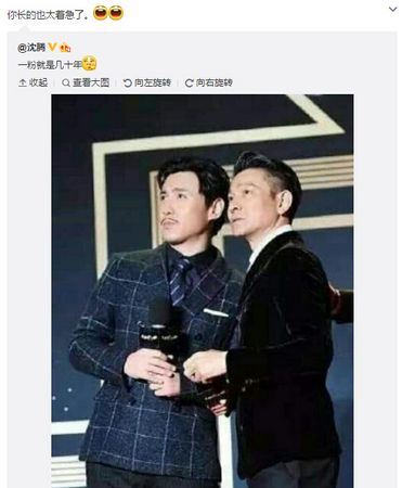 旧照中,沈腾仅能与刘德华海报合影,而如今,沈腾已可以和偶像同台合照。网友看到照片后纷纷留言调侃,“你到底比华仔大几岁啊”、“几十年你变化确实不少,华仔却没有”、“岁月对你做了什么”。此外,哈文也转发调侃道,“你长的(得)也太着急了”。