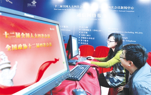 2月26日,设在北京梅地亚中心的十二届全国人大四次会议和全国政协十二届四次会议两会新闻中心准备就绪,为接待和安排中外记者采访等相关工作做好保障。 经济日报记者 翟天雪摄