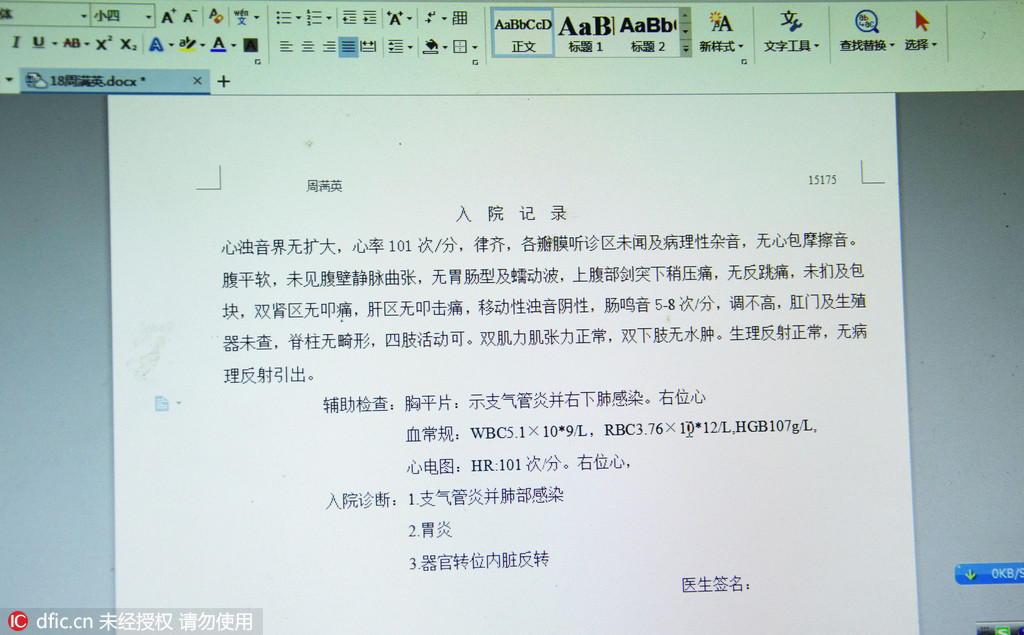 今年58岁的周女士家住双峰县井字镇莲塘村,这也是她第一次住院?!捌绞备芯趺皇裁床煌膊皇鞘裁醋笃沧??!敝芘克?,“要不是咳嗽严重到医院来做检查,还不知道自己有这么特殊呢。娘家的其他五个兄弟姊妹,都到过医院做过检查,很正常。”
