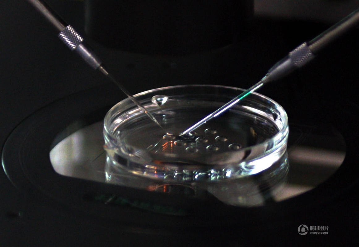 资料图:2002年5月,西安唐都医院,高倍显微单精卵母细胞浆内注射授精