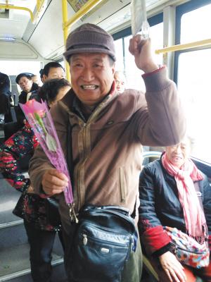 在聊天的过程中,这位老先生还把自己的爱心卡拿出来给记者看。他说,“我现在还比较硬朗,站一下没什么问题。今天是我开年来第一次坐公交,给比我更老的人让座,还能得到玫瑰花,我觉得心情很好?!?/p>