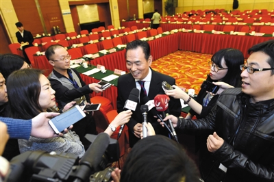 昨日的座谈会结束后,中国足协主席蔡振华被众记者围住。