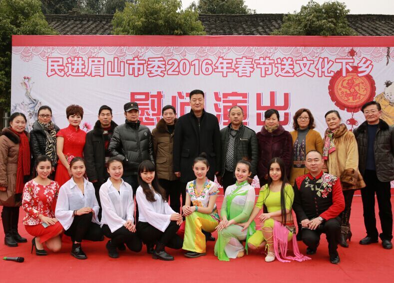 2015年11月,为深入贯彻习总书记在文艺座谈会上的讲话精神,认真落实中共眉山市委决战扶贫攻坚,实现两个率先和民进四川省委“文化进社区、文化下乡镇、文化走基层”的社会服务工作要求。民进眉山市委发挥界别优势,整合会内文艺工作者和爱好者,筹备成立了眉山民进艺术团。此次送文化下乡活动是艺术团的首次亮相,经过精心的排练和准备,此次踏水村的首演节目内容丰富,紧扣时代脉搏,贴近农村生活,通过灵活多样、生动活泼的文艺形式,丰富了农民群众的文化娱乐生活,宣传了党的富民政策,在寒冷的季节里给群众送去了温暖。在下一步的工作中,民进眉山艺术团计划继续创编一批有眉山地方特色的,群众喜闻乐见的文艺节目,深入基层,深入群众,为推动了社会主义文化大发展大繁荣发挥力量。