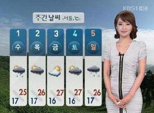 Kim Hye-seon身穿迷你连衣裙播报天气状况。