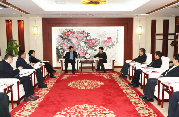 2月22日下午,民进中央主席严隽琪、常务副主席罗富和会见了前来民进中央机关走访的中共天津市委常委、统战部部长王宏江,天津市人大常委会副主任、民进天津市委会主委张俊芳一行,并举行座谈。罗富和主持座谈会,民进中央秘书长高友东参加座谈。