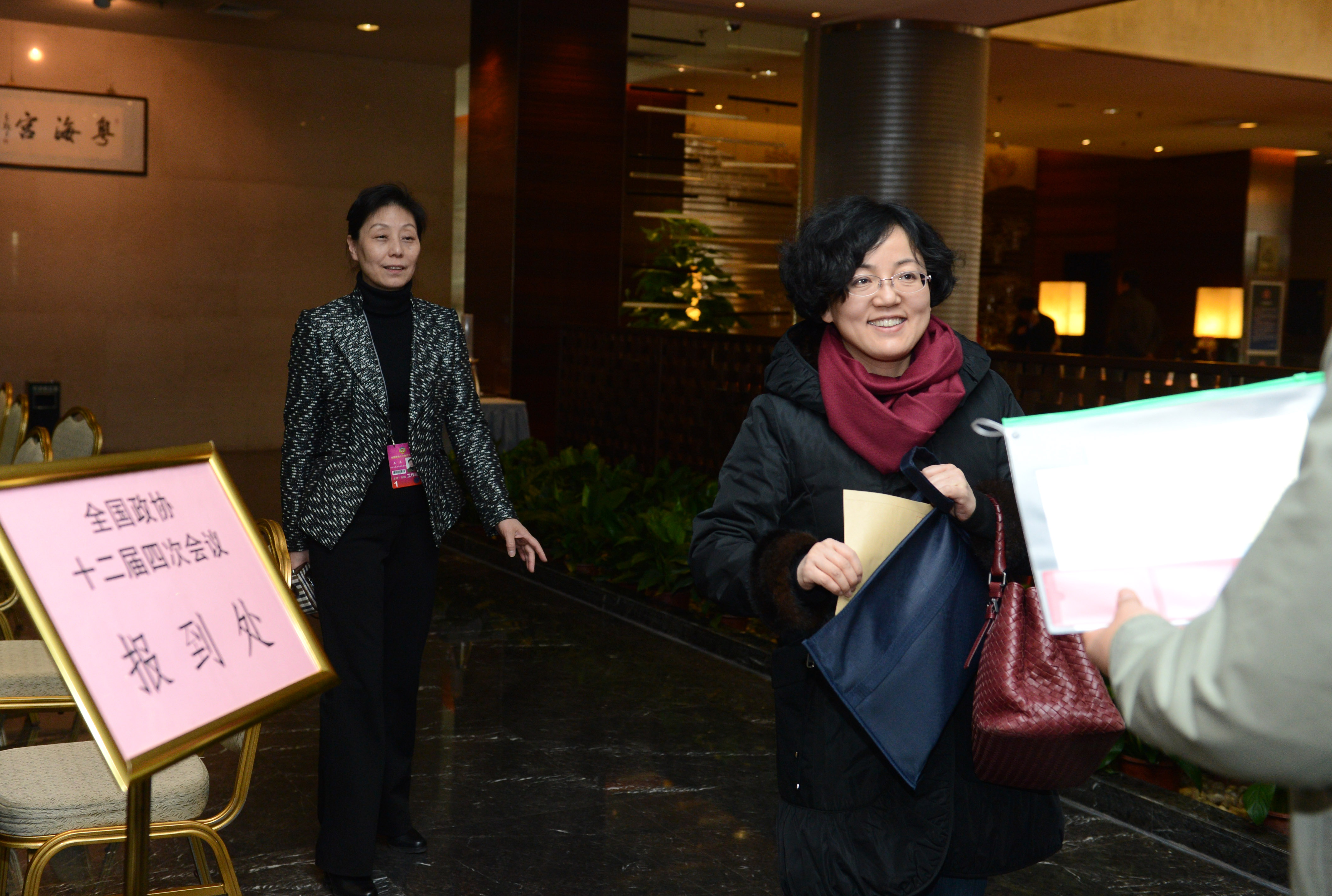 出席全国政协十二届四次会议的委员陆续抵达北京