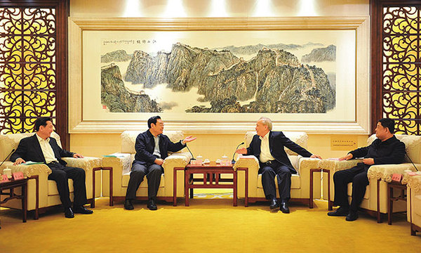 2016年3月2日,全国政协副主席、全国工商联主席王钦敏,中央统战部副部长、全国工商联党组书记、常务副主席全哲洙在全国工商联机关会见山西省委书记、省人大常委会主任王儒林,省委副书记、省长李小鹏,省委常委、常务副省长高建民,省委常委、统战部部长孙绍骋,省委常委、省委秘书长王伟忠,副省长王一新一行。