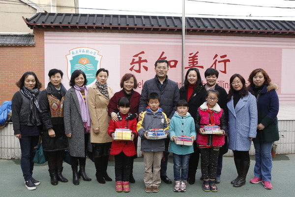 2月26日,民盟南京市委驻会副主委戴云、盟市委妇委会主任申卫及部分妇委会委员到西街小学看望被资助的学生,给他们送去了文具、书刊和2016全年午餐费。