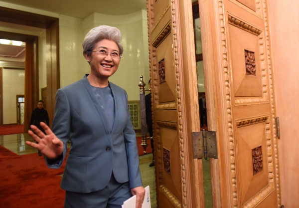 3月4日,十二届全国人大四次会议在北京人民大会堂举行新闻发布会。大会发言人傅莹就大会议程和人大工作相关的问题回答中外记者的提问。 新华社记者 金良快 摄