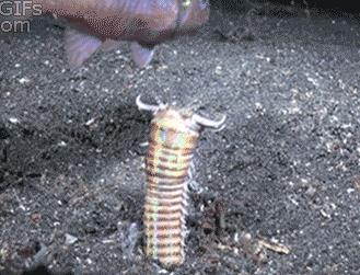 博比特虫的进食器官十分复杂,被称为“咽头”,能由内向外翻转。在其末端具有锋利的下颚,一旦猎物被抓住,博比特虫往往能以迅雷不及掩耳之势将其斩为两段。有时候人无意中接近,也可能遭其“毒口”。捕到猎物之后,博比特虫便立即躲进自己的洞中进食。