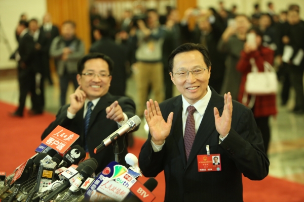 3月5日,第十二届全国人民代表大会第四次会议在北京人民大会堂开幕。这是开幕会前,列席大会的农业部部长韩长赋接受媒体采访。新华社记者 张铖 摄