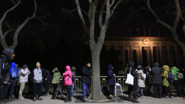3月5日,第十二届全国人民代表大会第四次会议在北京人民大会堂开幕。这是记者在人民大会堂外排队等待进入会场。新华社记者邢广利摄