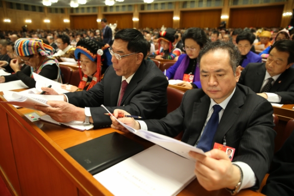 关键词:十二届全国人大四次会议在京开幕 代表听会
