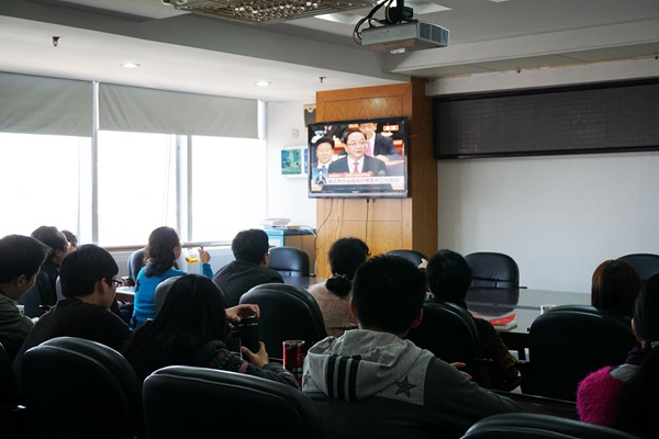 2016年3月3日下午3时,全国政协十二届四次会议在人民大会堂隆重开幕。农工党福建省委会机关组织全体干部职工一起观看了中央电视台的开幕式实况直播,认真聆听全国政协主席俞正声代表十二届全国政协常委会所作的工作报告。省委会副秘书长兼办公室主任万姗负责组织机关全体干部职工观看开幕式。收看后,大家一致认为,工作报道回顾工作内容详实,部署工作站位高远,体现了人民政协凝心聚力在十三五开局之年展现积极作为的决心和魄力,民主党派要顺应形势,搭乘协商民主的春风,在结构性改革等重大议题上更好建言献策,更能履职尽责。