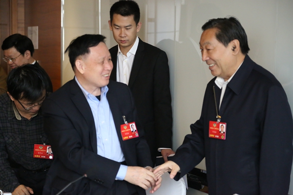 何星亮委员起身向大家鞠躬问好。何星亮会后告诉记者:“我是今年加入民革界别,首次参加小组讨论,心情非常激动,有了民革这个平台的支持,可以更好地履行政协委员职责。”(记者 靳祖保)