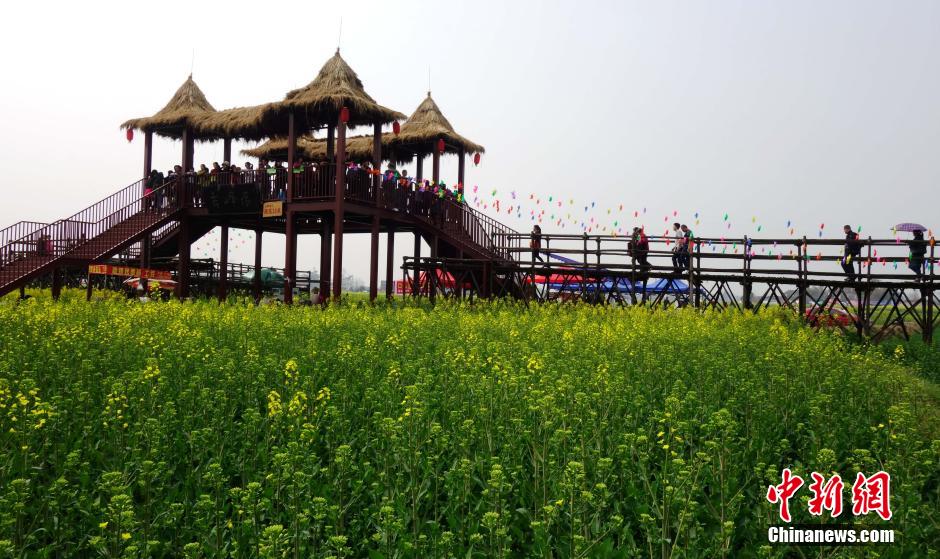 3月4日,广汉西高镇油菜花节启幕,引四方游客赏花忙。当日,四川持续的晴好天气,乡村油菜花相继盛开,吸引民众踏春赏花。中新社记者 刘忠俊 摄
