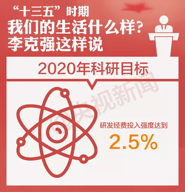 未来五年的经济发展需要科技创新,这需要大规模的研发投入。李克强在报告中指出,到2020年,力争全社会研发经济投入强度达到2.5%,科技进步对经济增长的贡献率达到60%。目前,我国社会研发投入的强度在2%左右,这意味着还有大约0.5个百分点的提升空间。研发占比指的是研发投入占GDP的比重,如果2020年GDP总额达到90万亿元,那么届时的研发投入将在2.25万亿元。