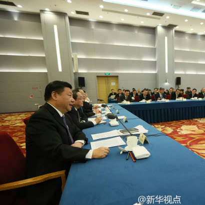 中共中央总书记、国家主席、中央军委主席习近平3月4日下午看望了参加全国政协十二届四次会议的民建、工商联委员,并参加联组会,听取委员们意见和建议。在认真听取大家发言后发表了重要讲话。习近平表示,大家在发言中提出了一些很好的意见和建议,有关部门要高度重视、认真研究。