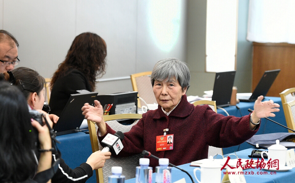 潜心50余年致力于敦煌石窟考古研究,现任敦煌研究院名誉院长的樊锦诗委员,在两会期间就文物?;さ任侍饨邮芗钦卟煞?。 记者 俞宁 摄