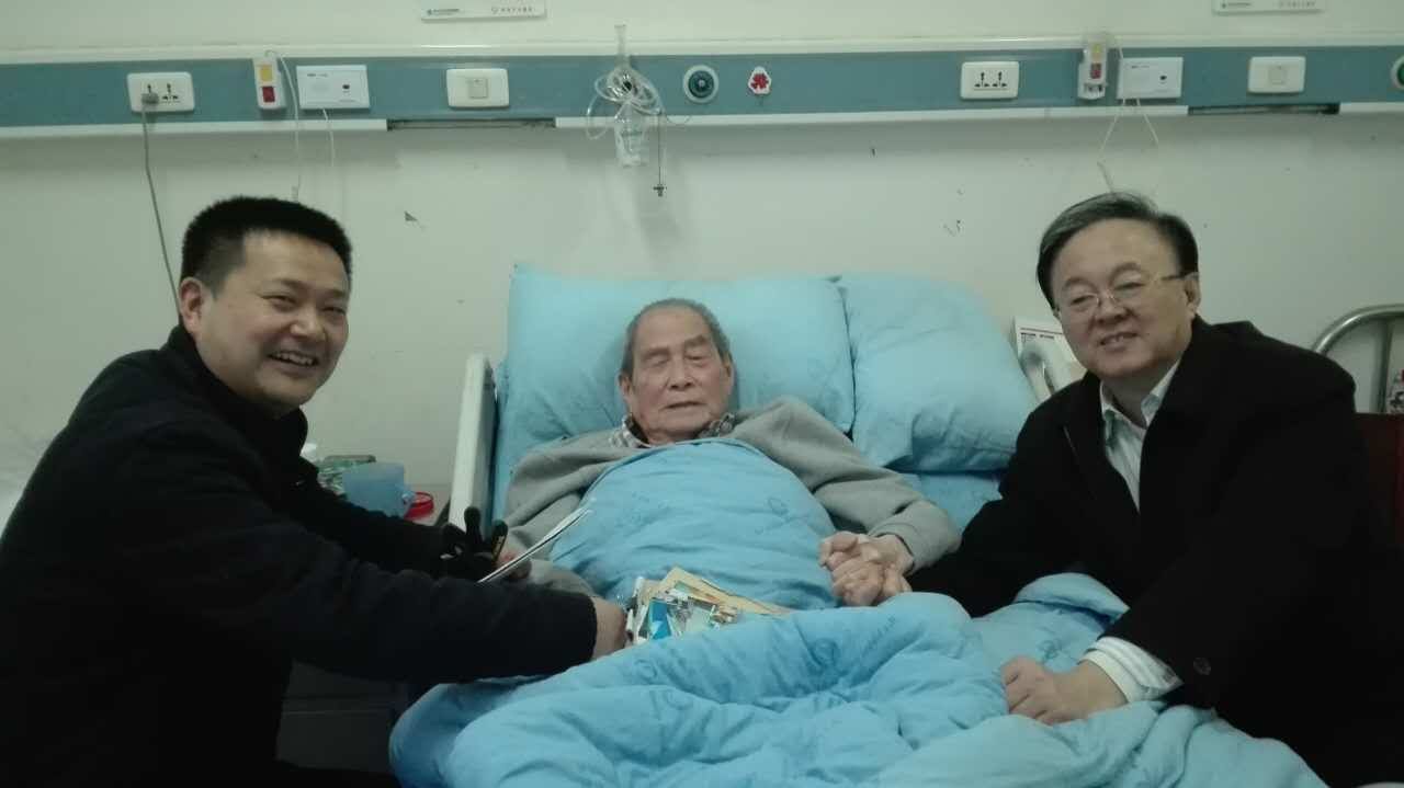 在华西医院病房,王元勇一行看望了民建省委原名誉副主委、98岁高龄的文宝瑛老领导,和他及其家人亲切攀谈。文老精神饱满、思维敏捷,坚持阅读民建刊物,关心会的工作,见到民建同志来慰问,提出了许多恳切的意见建议。王元勇祝文老新春快乐、安心治疗、延年百岁、健康长寿。