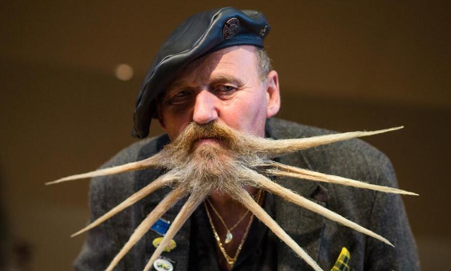 当地时间3月5日,世界胡须锦标赛在德国荀恩堡举行,选手们展示自己的胡须造型。