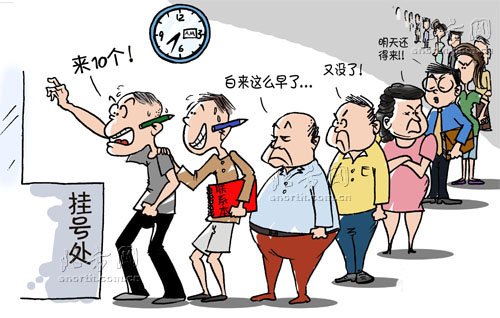 3月5日,在全国政协医疗卫生界小组会议上,全国政协委员、北大医院院长刘玉村分析了热门的“号贩子”问题,指出“号贩子”问题根本在于医疗资源供需失衡,建议提高挂号费诊疗费用,降低药费检查费,并建立符合医疗行业特点的薪酬制度。(3月5日国际在线)