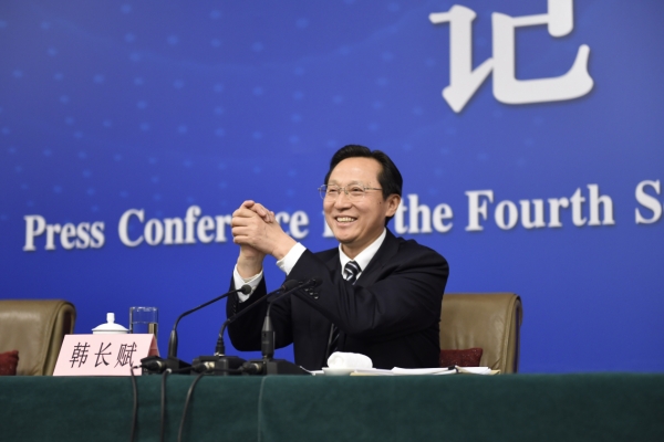 3月7日,十二届全国人大四次会议新闻中心举行记者会,邀请农业部部长韩长赋、新闻发言人叶贞琴就“转方式调结构 加快发展现代农业”的相关问题回答中外记者的提问。 新华社记者 陈益宸 摄