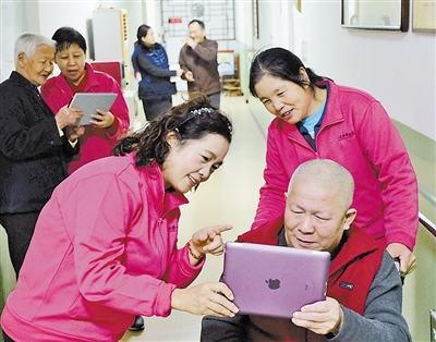 “虽然住养老院的老人有100余人,但依托‘互联网+’平台,我们的服务已经覆盖国内30个省市区?!蹦峡言笛显涸撼ぱτ阑萃嘎叮尤ツ?0月起,养老院开展网络护理服务和护理用品配送服务,从“线下”到“线上”,目前已经有2000余人次的老年人,通过互联网“尝鲜”,率先享受到养老咨询、健康顾问、亲属沟通、服务缴费、老年用品消费、老年娱乐等多种服务。